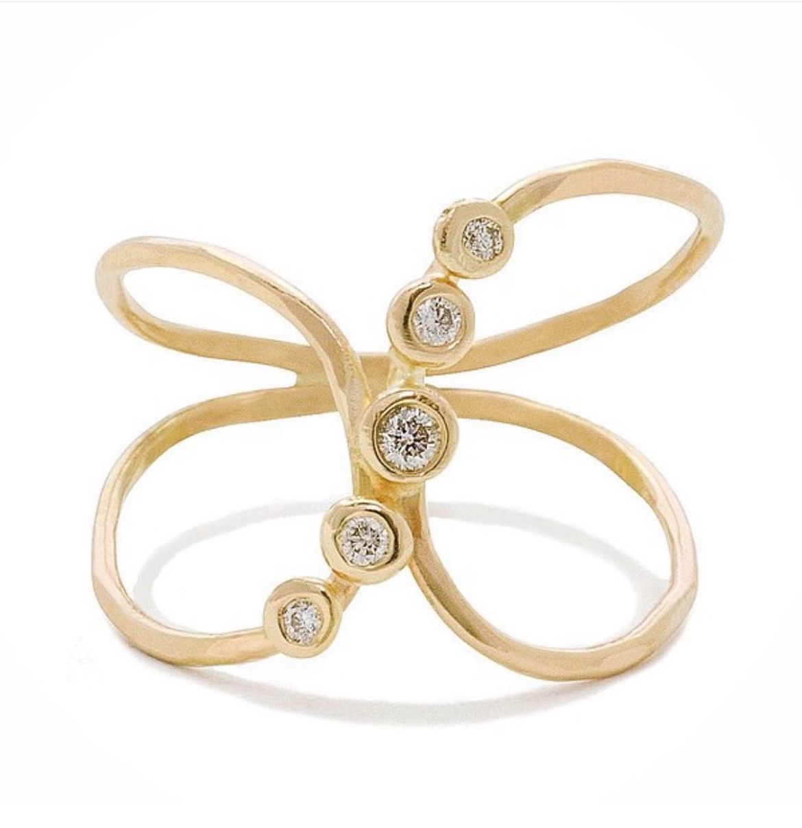 The handmade 14k Doric Ring conveys understated elegance with lines that sparkle. Handmade with five Si2 white Harmony diamonds.